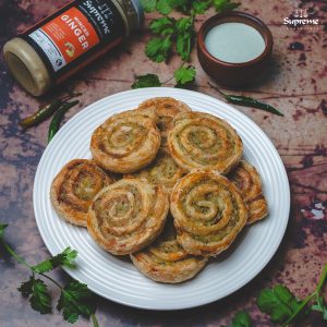 Make the pinwheels: Unroll the puff pastry. Divide the kebab mixture in 2 and spread half of the kebab mixture evenly. Gently and tightly roll up the pastry. Repeat with remaining puff pastry sheet and kebab mixture. Cover and chill the pinwheels in the freezer for 1 hour. Remove from the freezer, then take a sharp knife and cut the roll into ½ inch slices.At this point you can freeze the pinwheel slices.