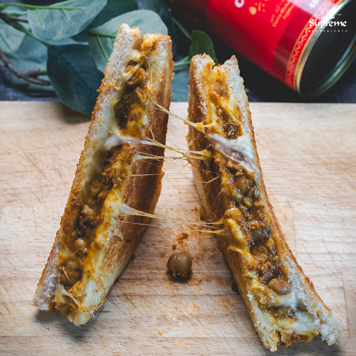 Indulge in the ultimate comfort food – a Curried Chickpea Toastie made with Supreme Curried Chickpeas. Layered with spiced chickpeas and gooey melted cheese between golden, buttery slices of bread – every bite is crispy, cheesy, and full of flavor!