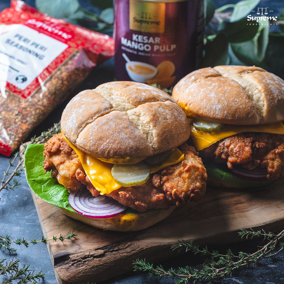 Crunch meets flavor! Buttermilk Fried Chicken Burger made with Supreme Chicken Fry Mix—every bite is pure satisfaction.
